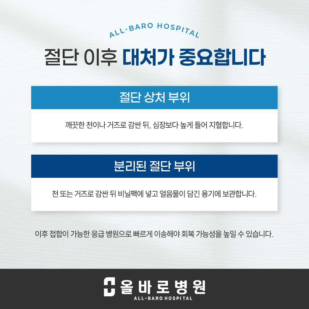 이후 빠른 시간 내에 접합이 가능한 응급 병원에 방문해야만 회복 가능성을 크게 높일 수 있습니다.