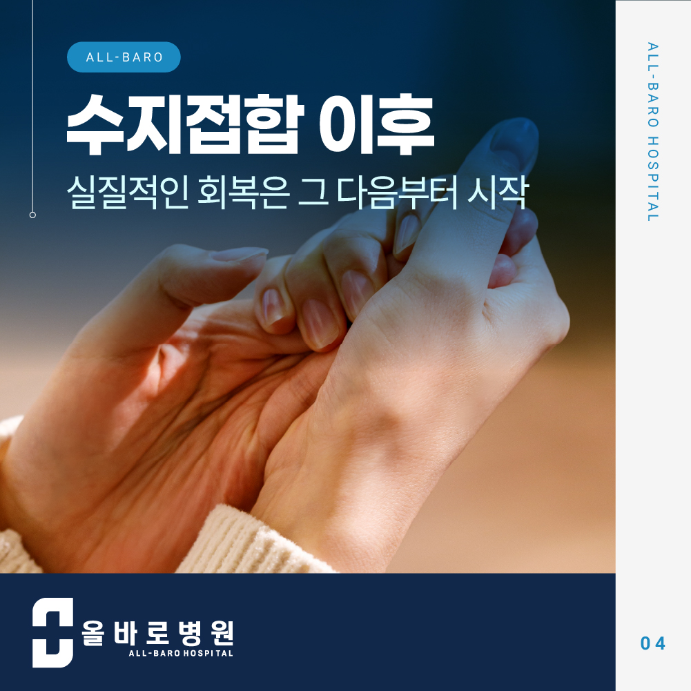 결국 손가락 수술은 접합 수술 자체로 완결되는 것이 아니라, 이후의 재활까지 모두 포함해 ‘기능’을 되찾는 과정까지 포함 됩니다.