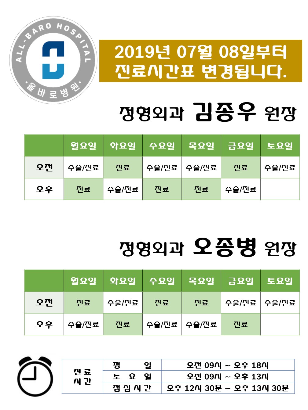 정형외과 외래 진료시간표 변경(2019/07/08)