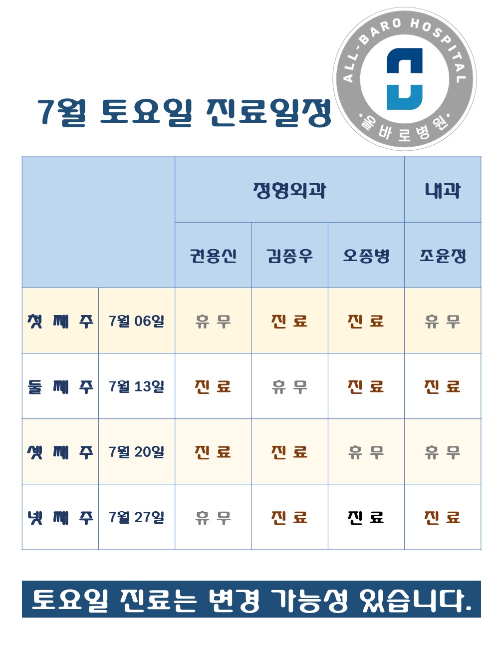 정형외과 외래 진료시간표 변경(2019/07/08)