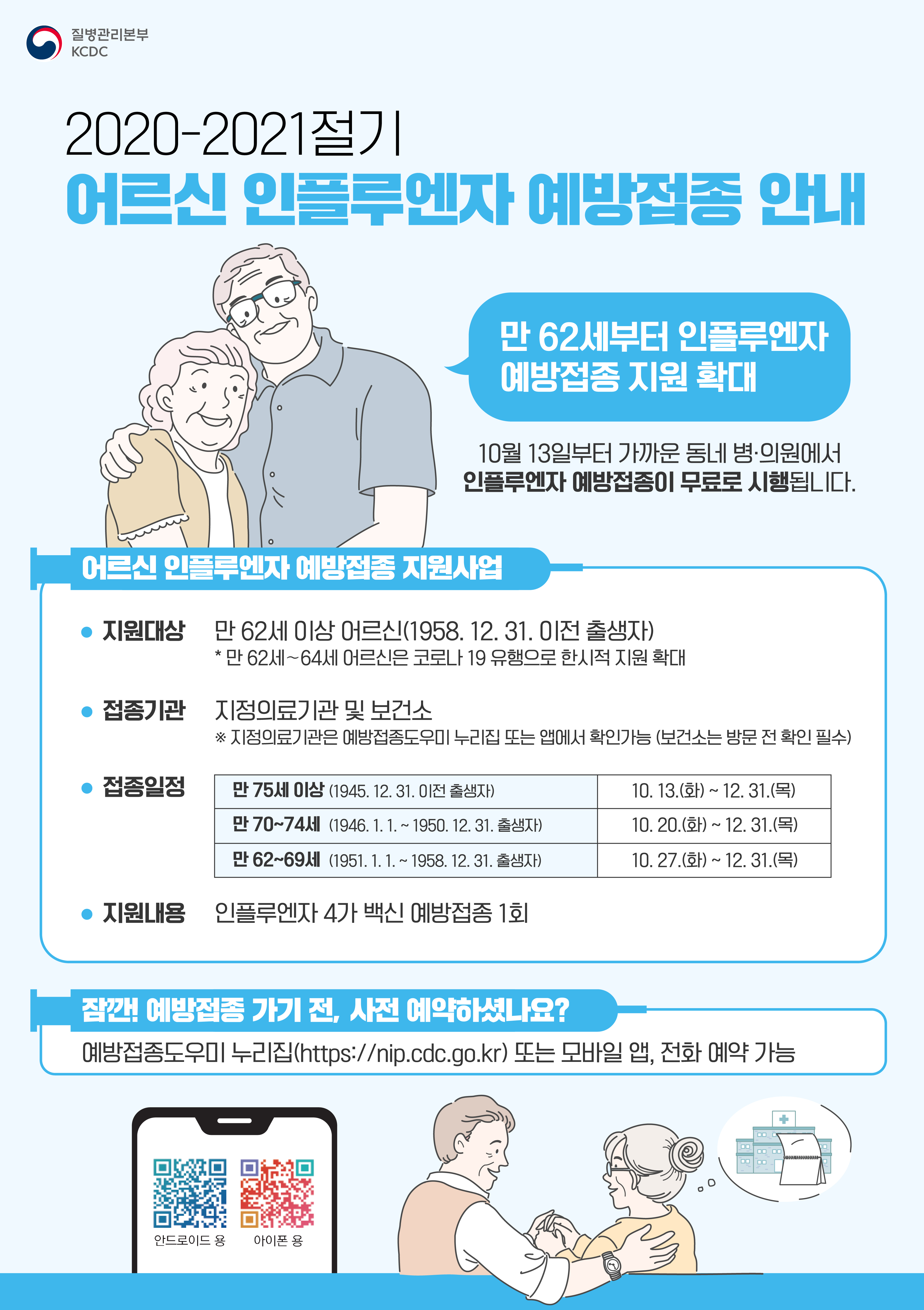 - 만 62~69세 : 2020.10.27.(화) ~ 2020.12.31.(목)