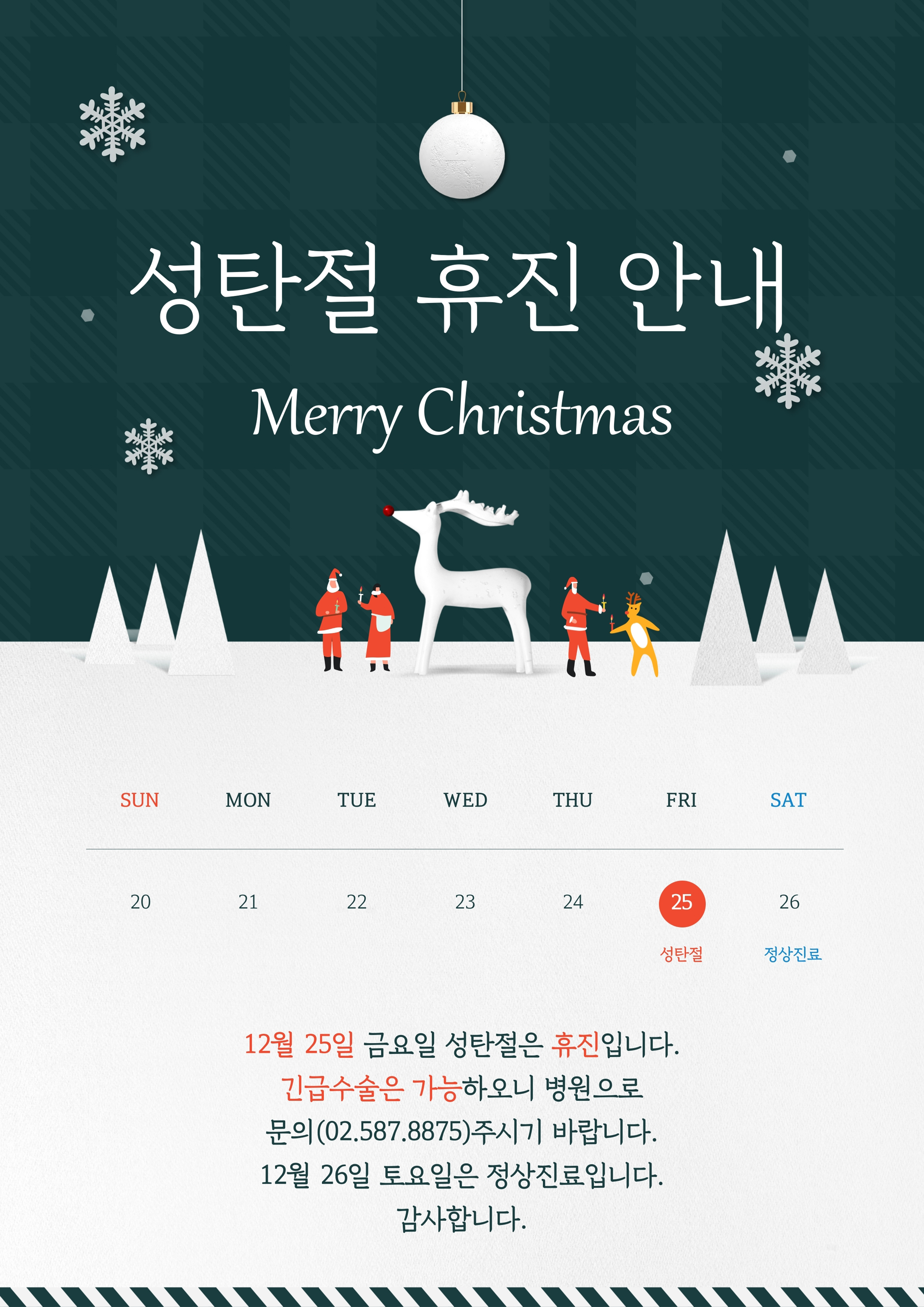 올바로병원 2020 성탄절 휴진 안내