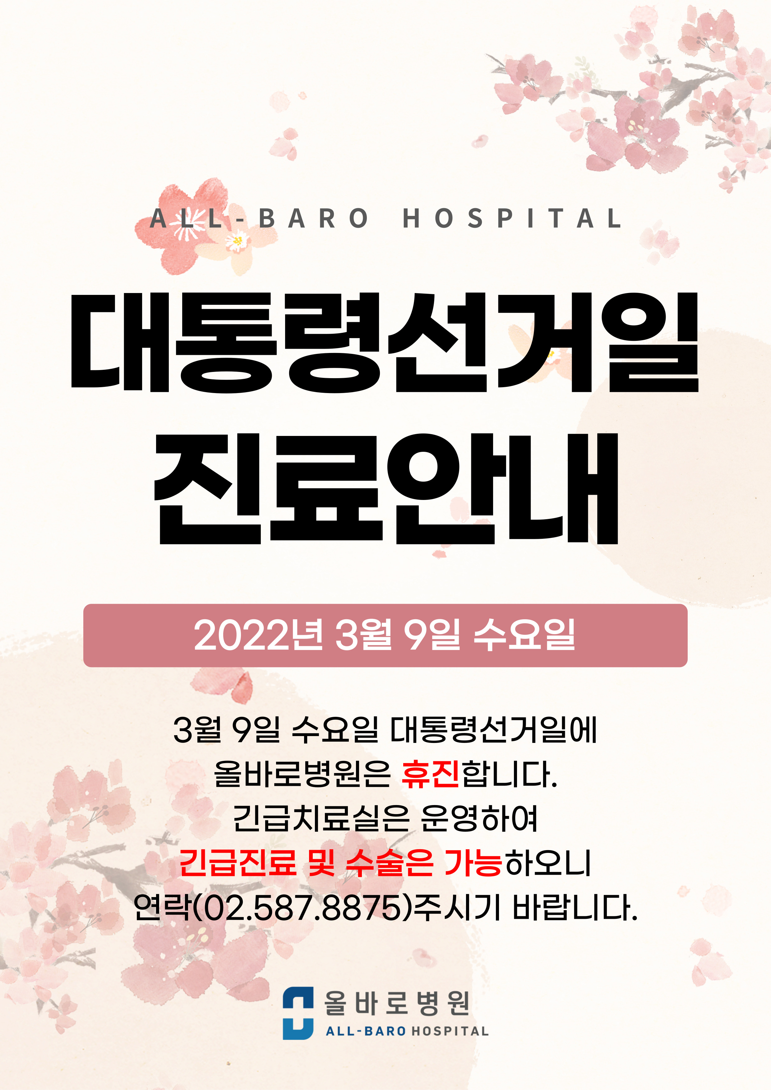 올바로병원 대통령선거일 진료안내