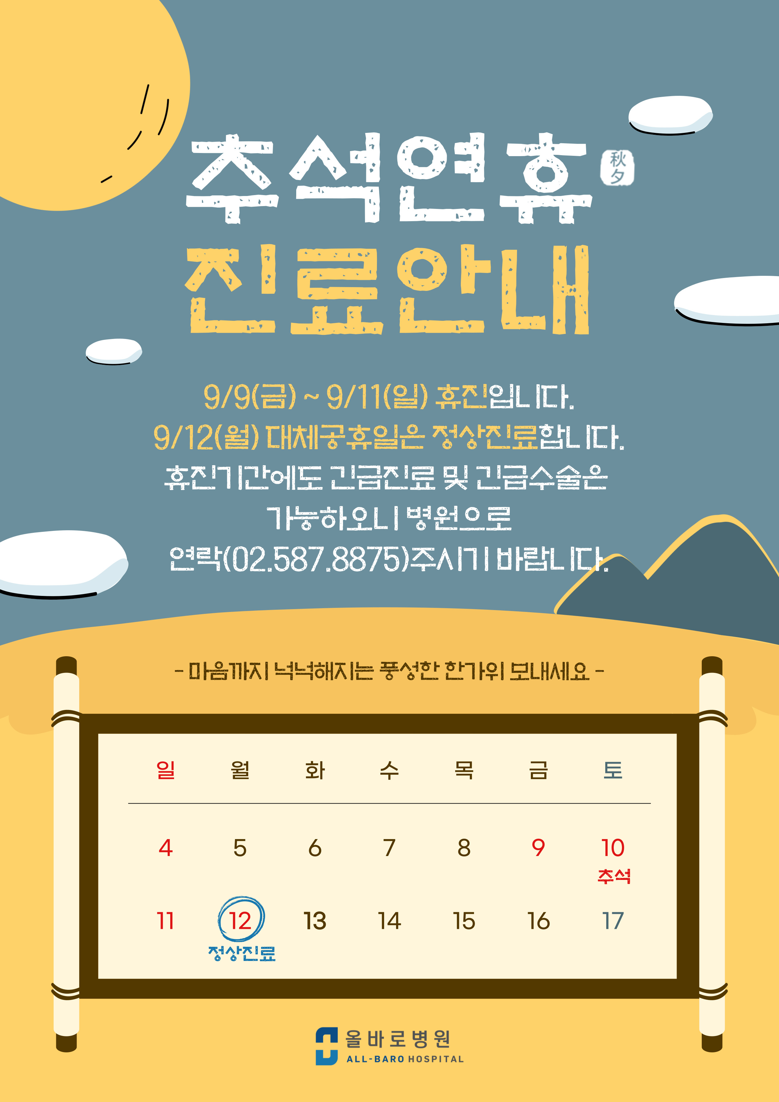올바로병원 2022년 추석 진료안내