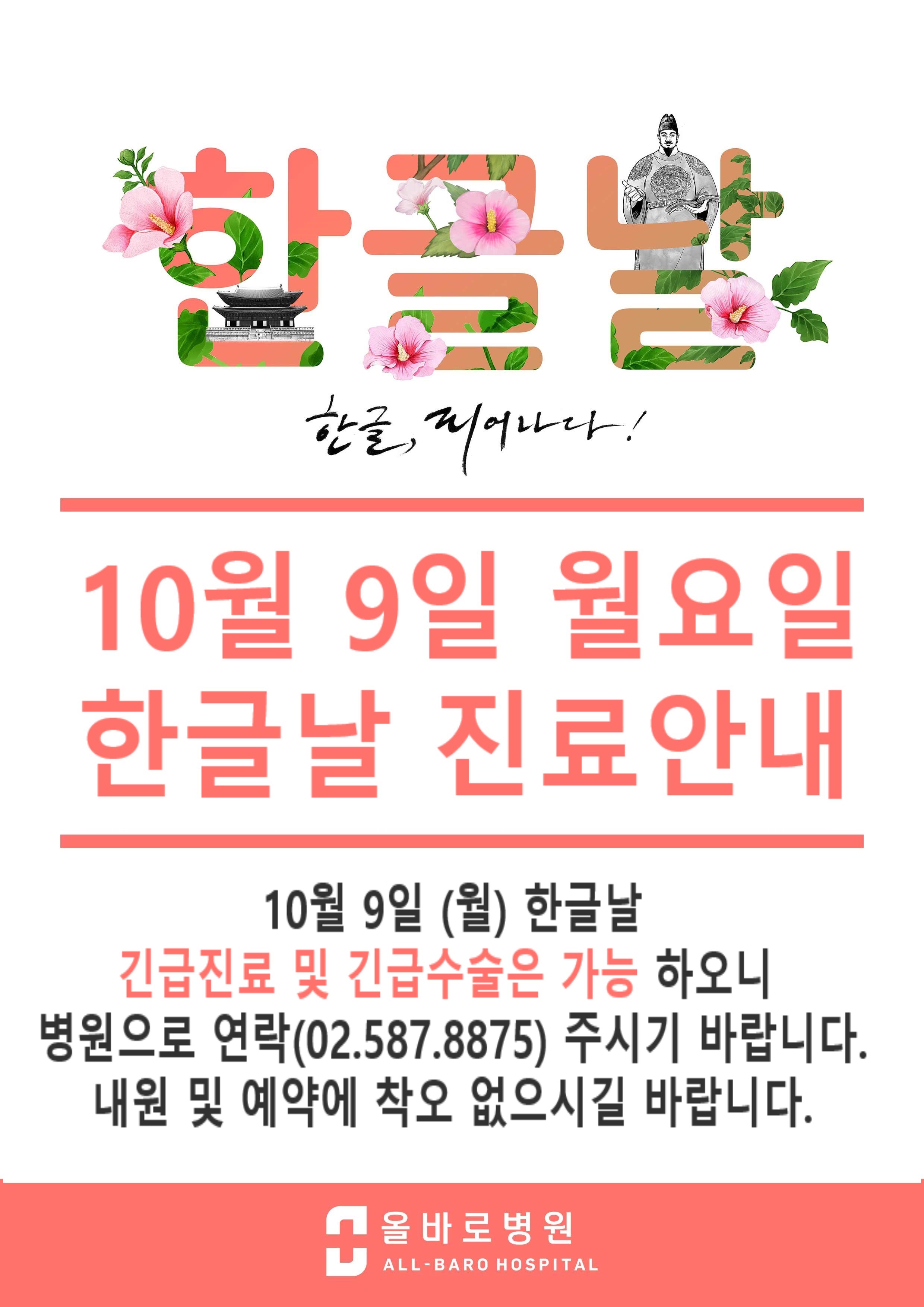 올바로병원 한글날 진료안내