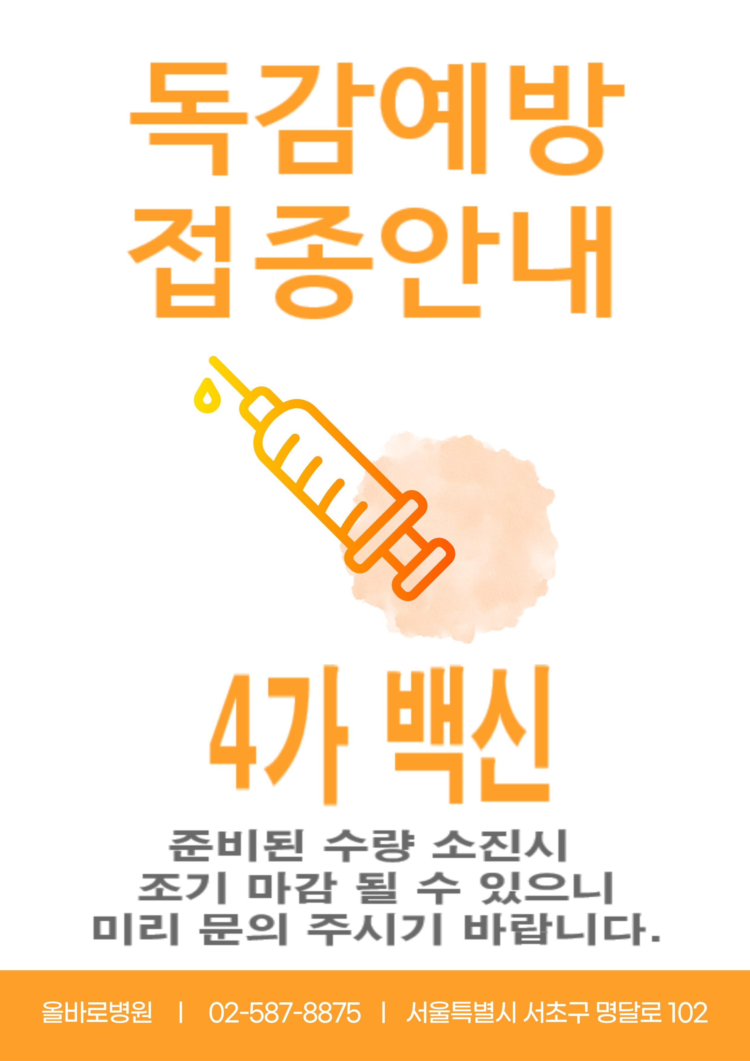 올바로병원 독감예방접종 안내(4가 독감 백신)