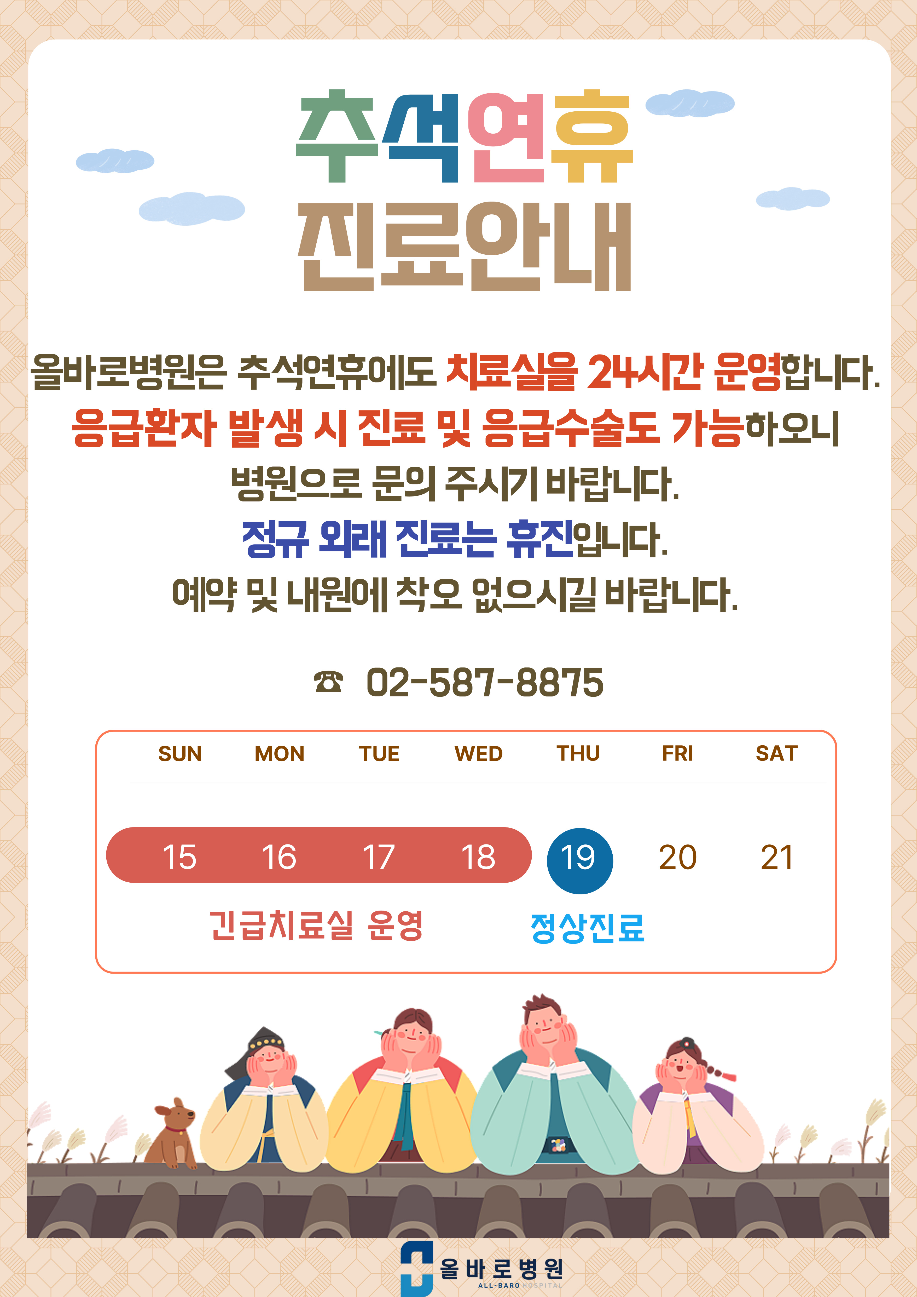 올바로병원 추석연휴 진료안내